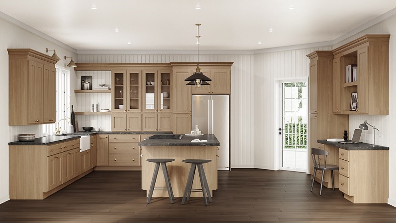 Square Recessed Panel Partial Overlay Doors with Slab Drawer Fronts (This style is available with a recessed 5-piece drawer front, for an additional up-charge)