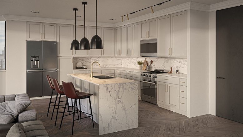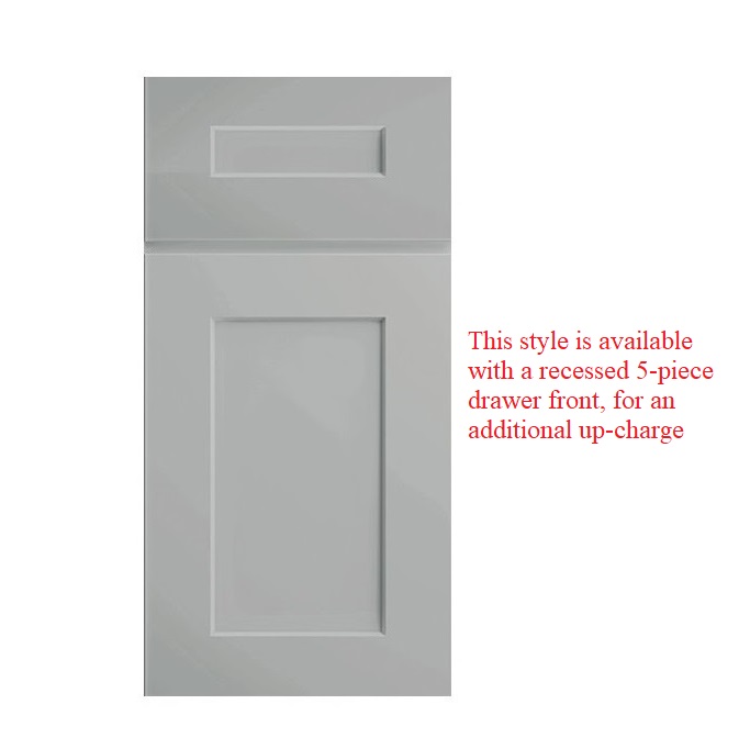 Square Recessed Panel Partial Overlay Doors with Slab Drawer Fronts (This style is available with a recessed 5-piece drawer front, for an additional up-charge)