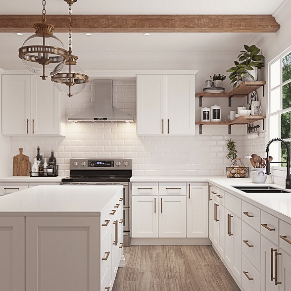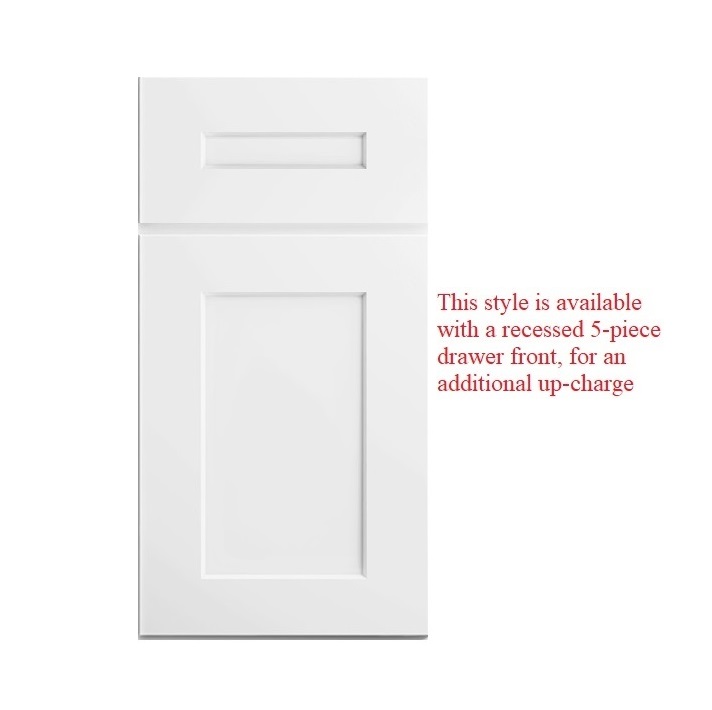 Square Recessed Panel Partial Overlay Doors with Slab Drawer Fronts (This style is available with a recessed 5-piece drawer front, for an additional up-charge)