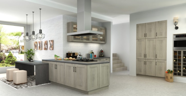 Yellow Oak Wood Grain Finish Laminated Doors and Drawer Fronts