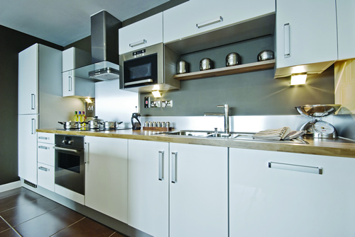 Wall Cabinets; Top, Bottom and Sides are Finished with Matte White. Top and Bottom Edges are Finished with Matte White. Base Cabinets; Sides are Finished with Matte White